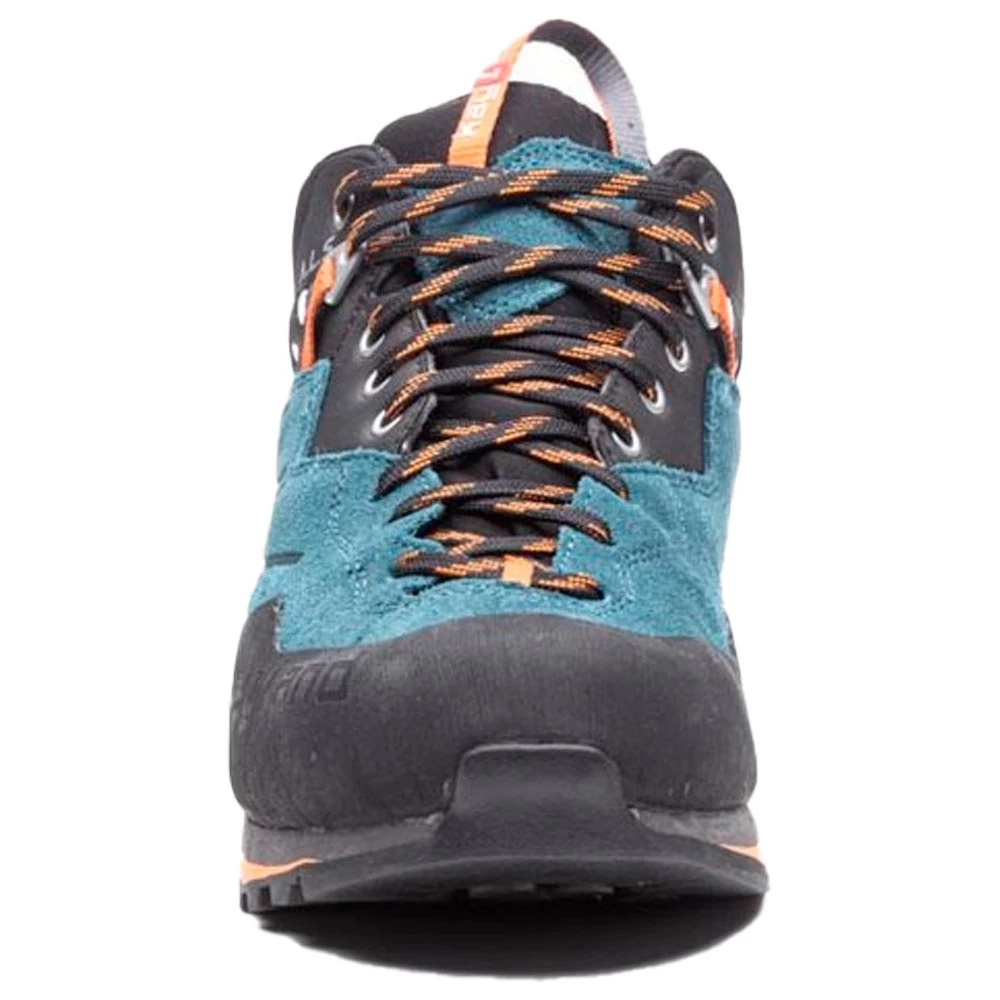 La Vitrik Gtx de Kayland est une chaussure d’approche qui vous assure un confort et un maintien optimaux. Très enveloppante, vous n’aurez aucun mal à vous déplacer sur des terrains rocheux et mixtes. Sa tige en cuir suédé est résistante à l’abrasion et le talon et la pointe sont renforcés pour un maximum de durabilité. Dotée d’une membrane Gore-Tex Extended Comfort, celle-ci apporte de l’imperméabilité et de la respirabilité. Vous pourrez donc partir lors d’un temps humide ou chaud avec des efforts intenses, votre pied restera toujours au sec. Votre pied sera également bien bloqué grâce au système ALS pour des foulées toujours plus sûres. La semelle intermédiaire microporeuses à double densité va venir absorber les chocs et assurer de la stabilité à tout instant. La semelle extérieure en Vibram Gravity avec premium Megagrip, va quant à elle offrir accroche et adhérence sur toutes les surfaces. Elle sera ultra-performante autant en phase d’escalade que de freinage.