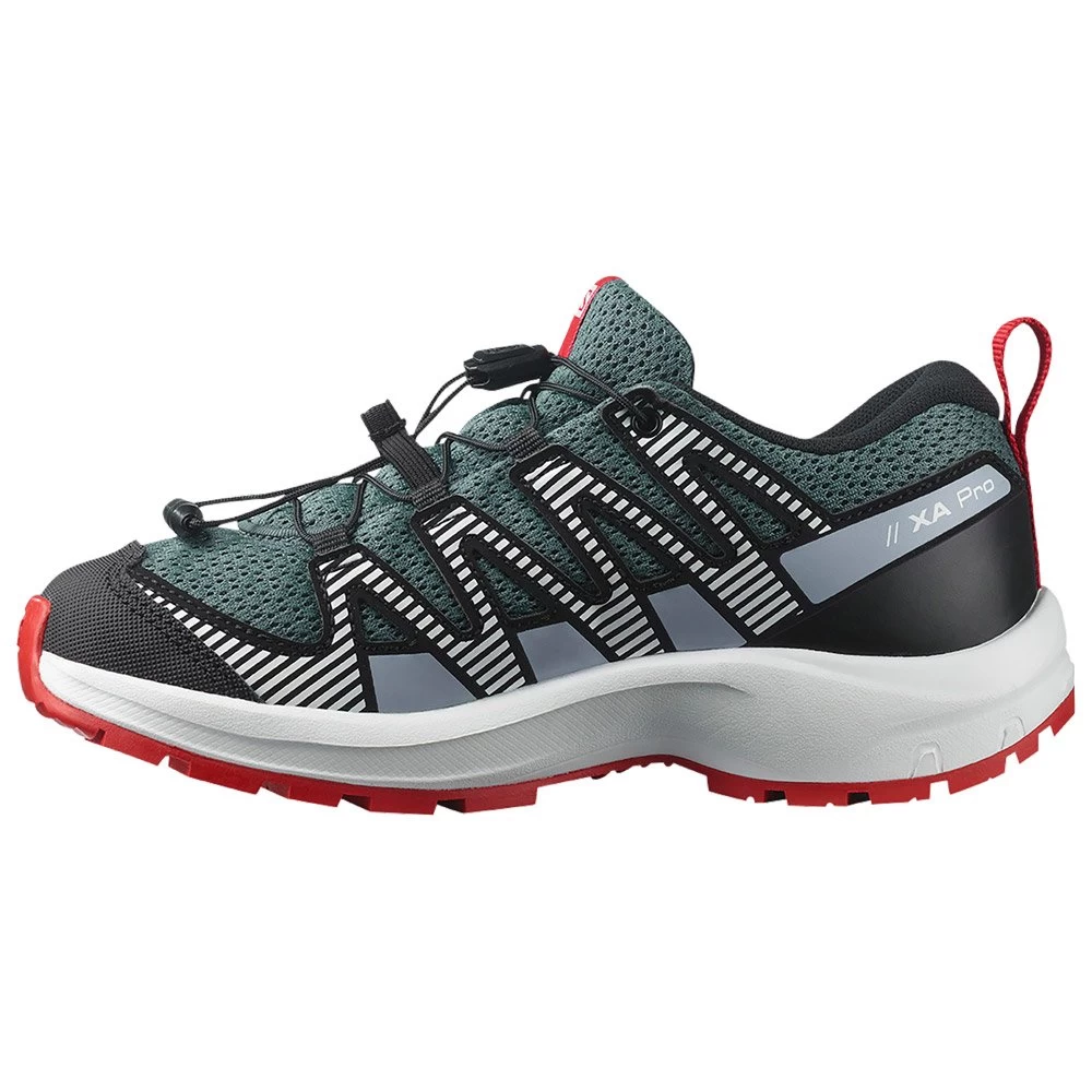 Les chaussures de randonnée Xa Pro V8 J de Salomon sont conçues pour les jeunes aventuriers qui veulent suivre leurs parents lors de leurs excursions estivales avec un look sportif. Ces chaussures bénéficient de technologies innovantes comme la semelle extérieure All Terrain Contagrip qui s’adapte à tous les types de surfaces avec une grande durabilité. Côté confort, la construction SensiFit vient envelopper le pied afin d’assurer un fit précis et confortable. Le 3D Mesh sur le dessus des chaussures garantit une très bonne respirabilité tout comme la doublure textile. La semelle intercalaire EnergyCell va quant à elle absorber les chocs avec sa mousse EVA. Les Xa Pro V8 J disposent d’un pare-boue, qui protège le bas du pied, ainsi que d’un pare-pierre. Ces chaussures sont parfaites pour accompagner vos enfants dans leurs randonnées d’autant plus qu’elles sont faciles à enfiler et à retirer grâce au système Quicklace™.
