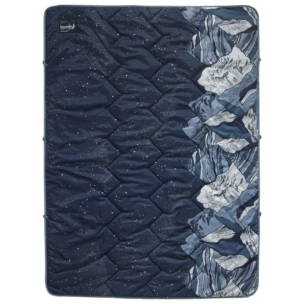 La Stellar de Therm-a-Rest est une couverture polyvalente qui pourra vous accompagner en randonnée, en camping ou encore à la plage. Son isolant eraLoft est chaud et résistant à l’humidité pour un confort maximale. Elle est douce grâce à sa doublure en polyester et dispose d’un cordon de serrage sur le bord inférieur pour limiter les courants d’air. Cela la maintiendra également en place sur vos pieds. Des boucles avec bouton pression sont disposées tout autour afin de pouvoir la combiner avec une couette, un drap ou une autre couverture. Son petit volume une fois pliée dans sa pochette intégrée lui permet de se glisser facilement dans un sac à dos afin de vous suivre dans toutes vos sorties.