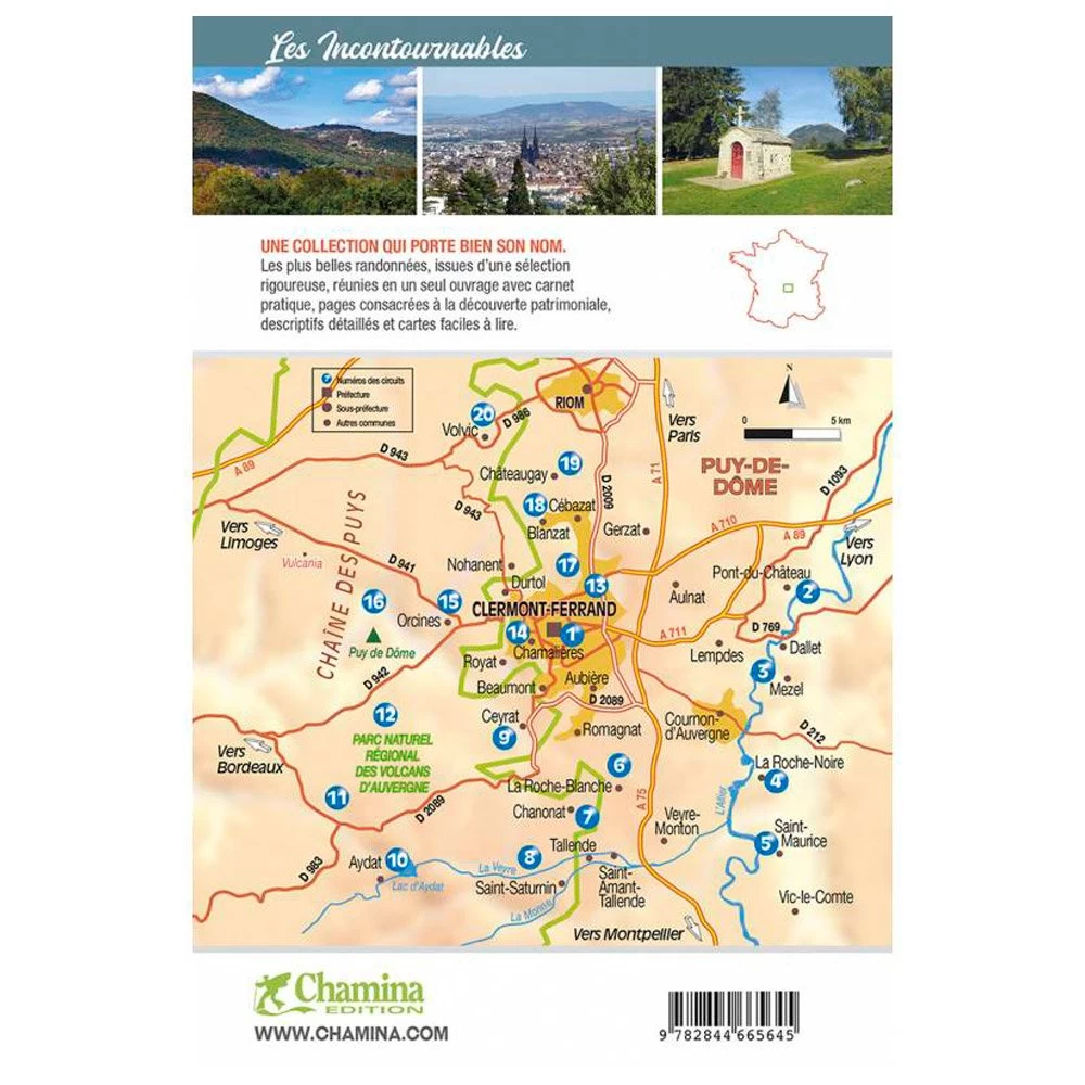 Autour De Clermont-Ferrand est un guide édité par Chamina Edition qui permet de découvrir 20 balades à 40 min de voiture de Clermont-Ferrand maximum et accessibles en transport en commun pour certaines. Vous trouverez également deux circuits à faire dans la ville et de quoi explorer les richesses géomorphologiques de l’Auvergne : la chaîne des Puys, le plateau de Gergovie, les berges de l’Allier ou encore la Limagne. Ce guide présente