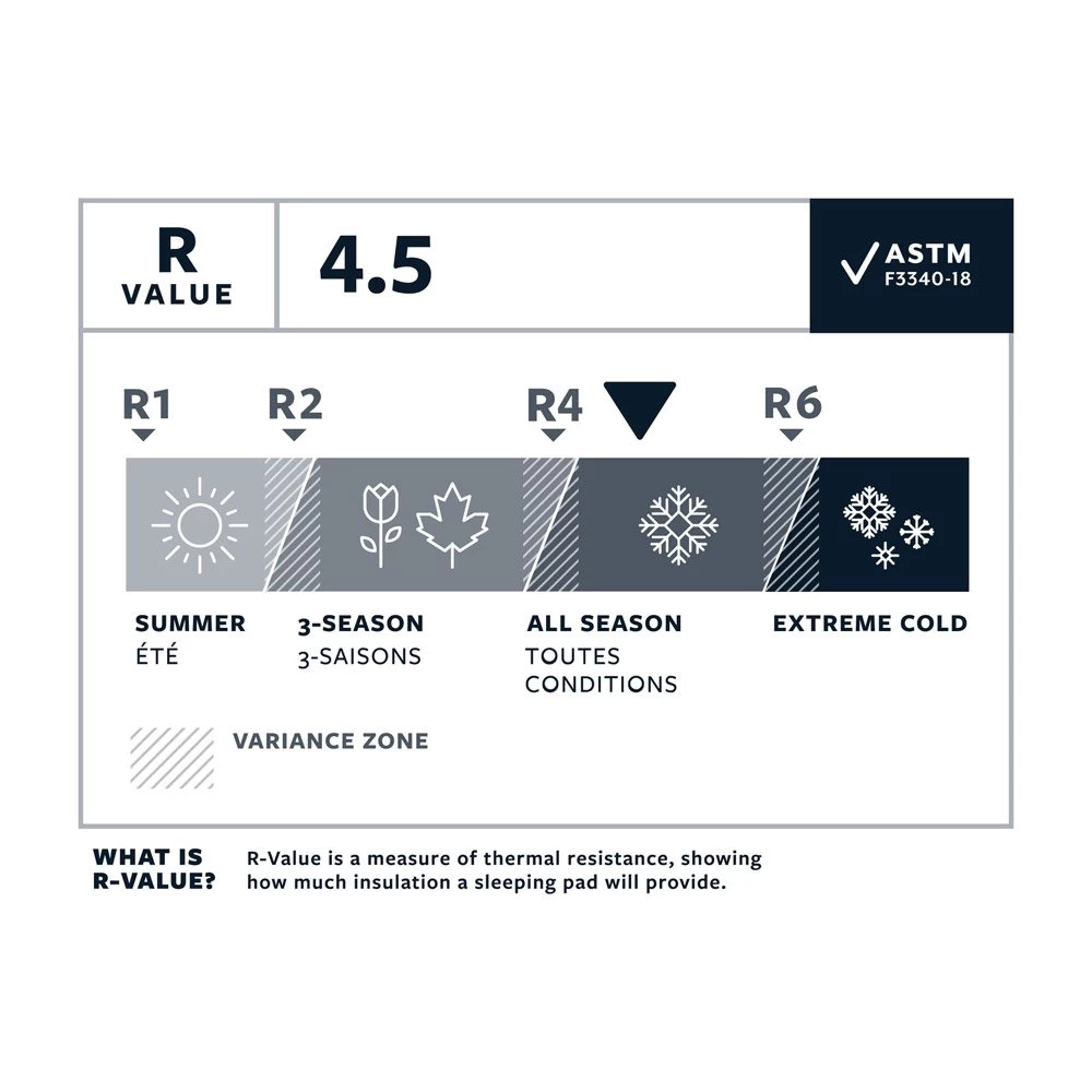 Le NeoAir XLite NXT de Therm-a-Rest est une évolution de son prédécesseur. Il est toujours ultraléger pour un transport facilité et toujours aussi pratique. Il bénéficie toujours de la structure Triangular Core Matrix et de la technologie Therma Capture avec cette fois-ci une meilleure intégration. Cela se traduit par une forte réduction des bruits de crépitements tout en garantissant une excellente conservation de la chaleur lui donnant une R-Value de 4,5 idéale pour une utilisation toutes saisons. Son épaisseur de 7,6 cm ce matelas assure du confort et un bon maintien. Il est facile à gonfler et à dégonfler grâce à sa valve WingLock. Vous pourrez également compter sur le sac pompe fournit pour ajuster le gonflage. Vous n’aurez aucun mal à l’enrouler avec son sac de rangement et il ne prendra que très peu de place grâce à son volume réduit.