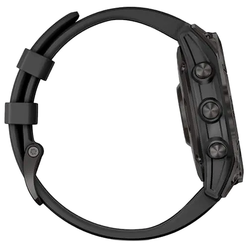La montre GPS Garmin Fenix 7 Sapphire Solar Edition est un modèle résistant aux rayures et à la chaleur pouvant être immergé jusqu’à 100 m de profondeur. Idéal pour le quotidien comme pour le sport, elle offre de nombreuses fonctionnalités telles que les fonctions classiques d’heure, date, réveil, chronomètre, minuteur et heures de lever/coucher du soleil. Le GPS bénéficie d’une compatibilité multi GNSS pour de meilleures performances, et les fonctions fréquence cardiaque continue ou au repos ainsi que suivi du stress et de la respiration sont également intégrés. Les Smart Notifications vous permettent de recevoir vos messages, alertes et emails sur la montre.